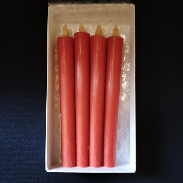 昔から日本で作られていた和蝋燭です。 漆科の櫨の木の実からとれるはぜ蝋を原料に手作りで仕上げます。 芯には灯芯を使い力強く時折瞬く明かりが特徴です。 糸芯と異なり燃焼に伴い灯芯は黒く残ることがあります。 残った芯が長くなると下に落ちたり炎の形が悪くなったりする事がありますので、 長くなっていたら1.5センチ~2センチほど残し芯をハサミやピンセットで切って下さい。 これを芯切りと言います。 火の粉が飛んだり切った芯を落とすことがありますので受け皿を用意して安全に行って下さい。 サイズ:全長約7センチ 燃焼時間:約15分 原料:はぜ蝋、灯芯 ※ご使用の際は火の取り扱いにご注意ください。