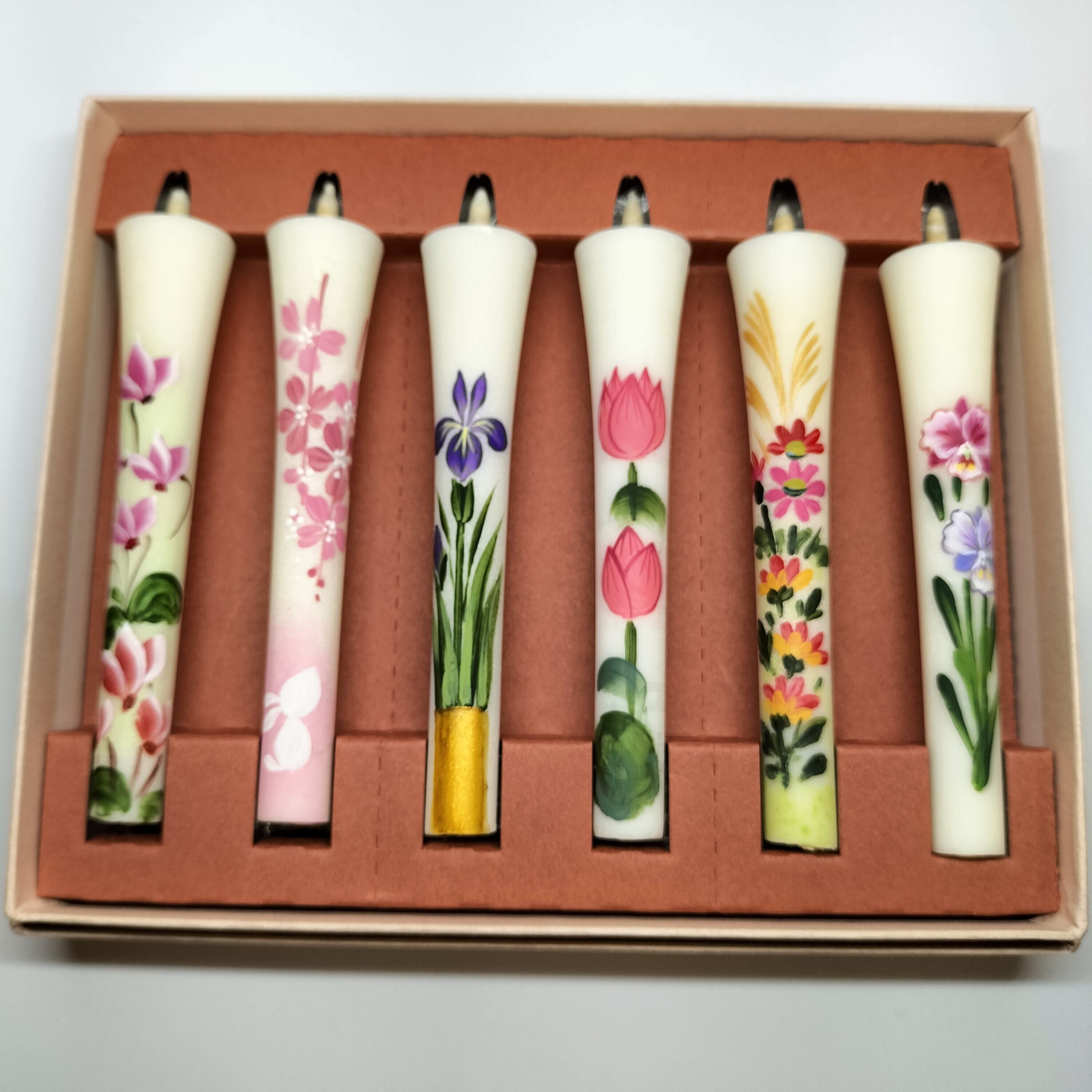 手描き絵蝋燭 3号6本入 四季の6本セット(シクラメン・桜とうさぎ・あやめ・蓮・ススキと菊・カトレア))