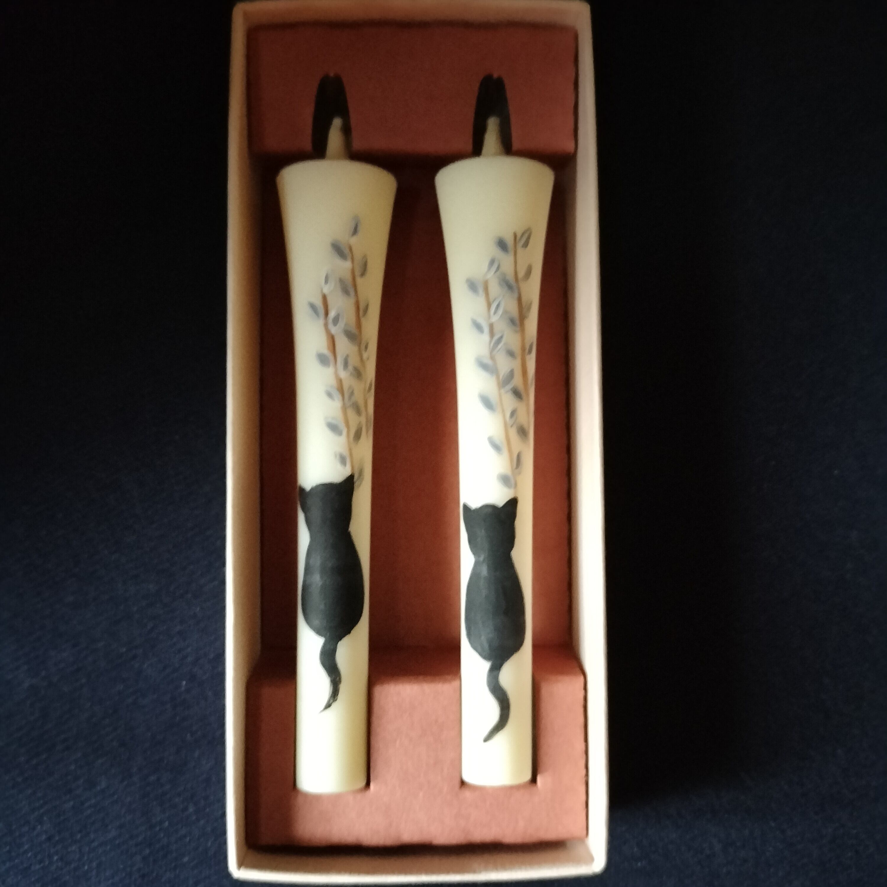 手描き絵蝋燭 3号2本入 猫柳と猫
