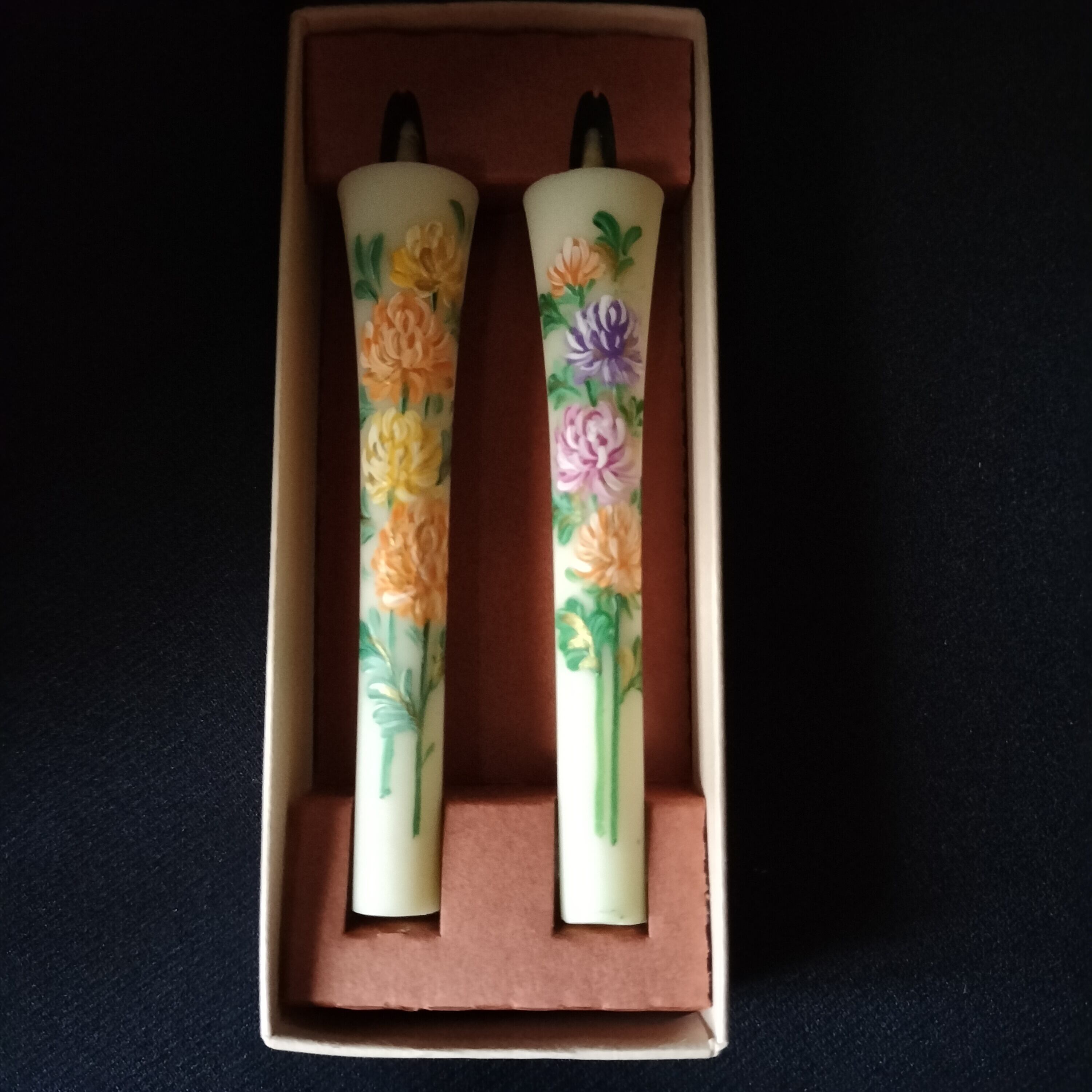 絵蝋燭は、冬の雪深い地域で生まれた文化です。冬になるとお花の採れない時期が長くなるり仏様にお供え出来ないのは申し訳ないという思いで生まれました。全て手作業で描かれるこだわりの絵柄は、お客様に幸せな時間をお届けすることを願っています。贈り物としても喜ばれること間違いなし!