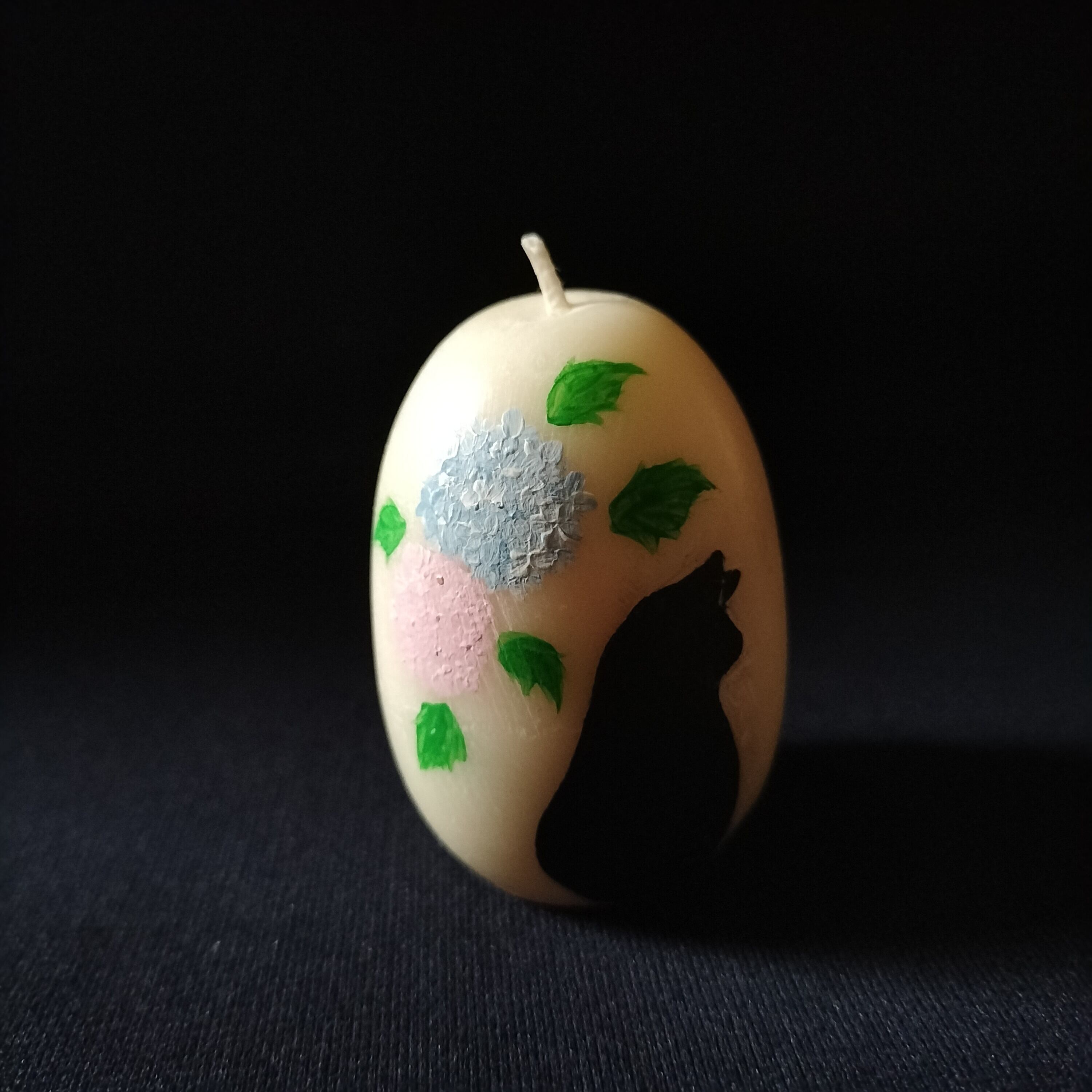 たまごキャンドル 猫と紫陽花