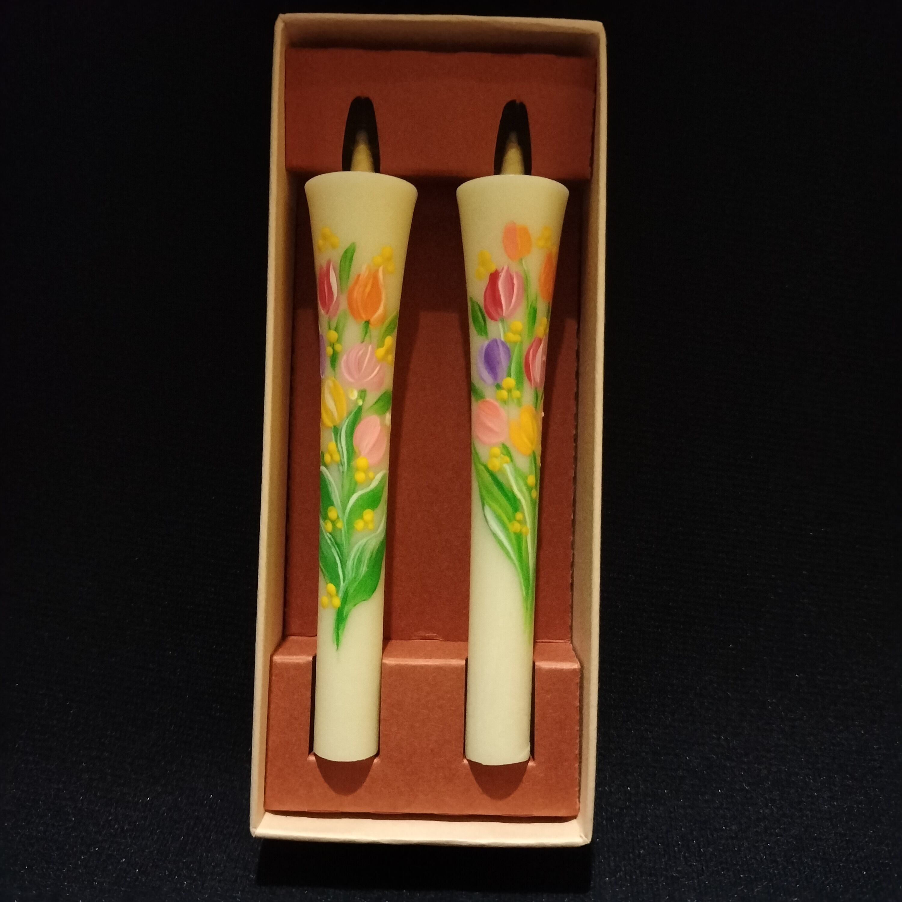 絵蝋燭は、冬の雪深い地域で生まれた文化です。冬になるとお花の採れない時期が長くなるり仏様にお供え出来ないのは申し訳ないという思いで生まれました。全て手作業で描かれるこだわりの絵柄は、お客様に幸せな時間をお届けすることを願っています。贈り物としても喜ばれること間違いなし!
